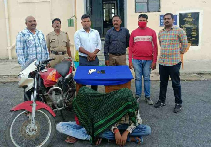 पुलिस को मिली गुप्त सूचना के आधार पर पुलिस ने नाके बंदी कर दो अपराधियों को रोका और उनकी जांच करने पर उनके पास से एक पिस्तौल बरामद की पुलिस ने एक दुपहिया वाहन, दो मोबाइल और दो अपराधियों को गिरफ्तार किया है। जिसमें अपराधी का नाम है। संतोष जंबोजी उम्र 33 वर्ष दूसरा अपराधी पवन कुमार लाल बच्चन राजभर उम्र 25 वर्ष पता चैतन्य कॉलोनी को गिरफ्तार किया है।