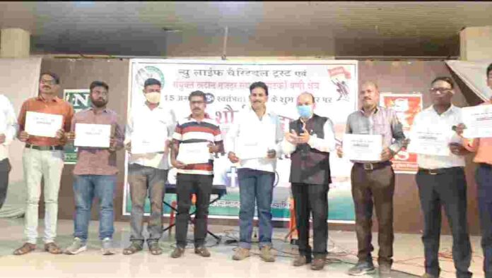 पुरी खबर घुग्घुस:- शहर मे 15 अगस्त स्वतंत्र दिन के शुभ अवसर पर कोविड 19 शौर्य योद्धा सम्मान हेतु विशेष समारोह न्यू लाईफ चैरिटेबल ट्रस्ट एव सयुक्त खदान मजदूर संघ ( आयटक ) वणी क्षेत्र द्वारा 15 अगस्त की शाम टेंपो क्लब घुग्घुस में कार्यक्रम का आयोजन किया गया था।