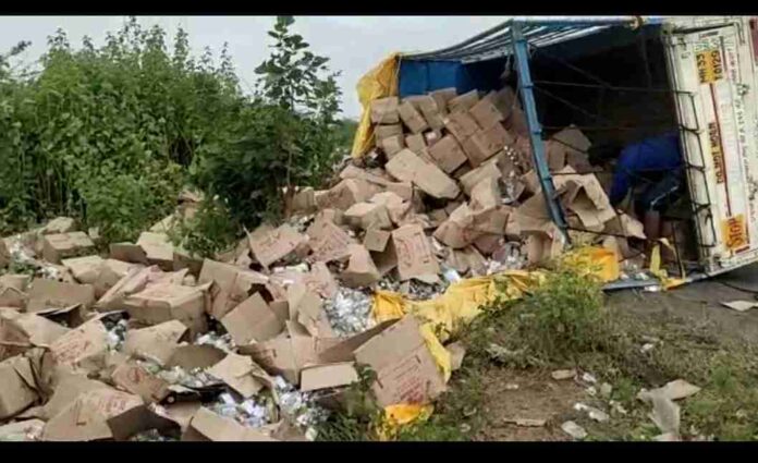 पुरी खबर : यवतमाल जिल्हा के वणी तहसिल से घुग्घुस चंद्रपुर के लिए आ रही एक दारू से लदी पिकअप वाहन के ड्राइवर का नियंत्रण बिगडने से बेलोरा ओबी यार्ड के पास मोड पर पलट गई। वाहन के चालक राकेश सहारे दारू के नशे मे गाडी चला रहा जिसके कारण यह घटणा हुई घटना मे वाहन चालक को मामुली चोट लगी जिसे आय व्ही आर सीएल के अंबुलेन्स कि सहायता से दवाखाना मे तुरंत पहुचाया गया है। वाहन मे तकरीबन 350 शराब कि पेटी होने जानकारी प्राप्त हुई दारू कि वाहन सुभाष डोर्लीकर नामक किसी व्यक्ति कि है शिरपुर पुलिस ने घटना स्थल पहुचकर पंचनामा किया आगे की छानबीन जारी है .