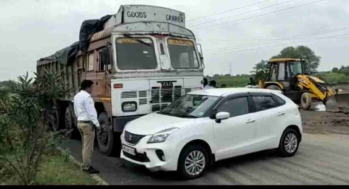 शाह कोल कंपनी के ट्रक ने कार को मारी जोरदार टंक्कर..।!