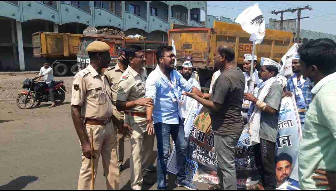 जड वाहनांची वाहतूक बंद करण्याकरिता आम आदमी पार्टी द्वारा रस्ता रोको आंदोलन करण्यात आले – अमित बोरकर