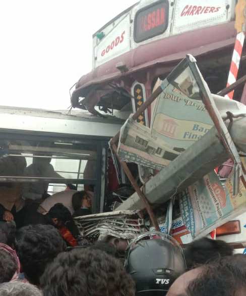 नागपुर से हर्ष ट्रैवल्स की निजी क्रं. एमएच 40 एटी 481 आज दोपहर लगभग 40 पैसेंजरों को लेकर चंद्रपुर के लिए रवाना हुई थी. पैसेंजरों के अनुसार बस की गति अधिक थी. इसलिए पैसेंजर ने चंद्रपुर निवासी बस ड्राइवर साबीर शेख (45) को बस को धीरे चलाने की विनंती की थी. इसके बावजूद वह तेज गति से चला रहा था. जैसे ही बस वरोरा के रत्नमाला चौक से लगभग 300 मीटर की दूरी पर पहुंची. उसी समय पर बस के ड्राइवर को नियंत्रण हटने से बस अनियंत्रित बस महामार्ग के डिवाईडर को पार करती हुई विपरीत दिशा से आ रहे ट्रक क्रं एमएच 40 बीजी 9540 से टकरा गई. यह टक्कर इतनी जोरदार थी कि बस और ट्रक के सामने का हिससा केबीन एक दूसरे के भीतर घुस गया. जिसमें दोनों ड्राईवरों की मौके पर ही मौत हो गई.
