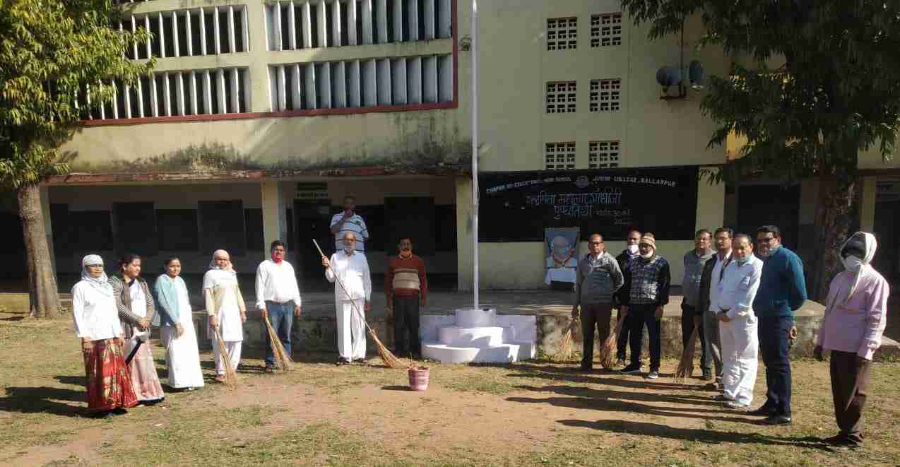 थापर जुनि. कॉलेज तथा हाय स्कूल बल्लारपुर में गांधीजी की पुण्यतिथि के अवसर पर शिक्षको द्वारा स्वच्छता अभियान