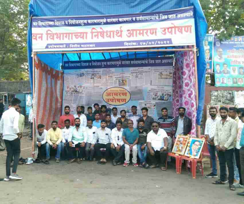 वन विभागाच्या ढिसाळ व नियोजनशून्य कारभारामुळे कामगार व सर्वसामान्यांचे जिव जात असल्याने वनविभागाच्या निषेधार्थ नितीन भटारकर यांच्या आमरण उपोषणाला सुरवात.