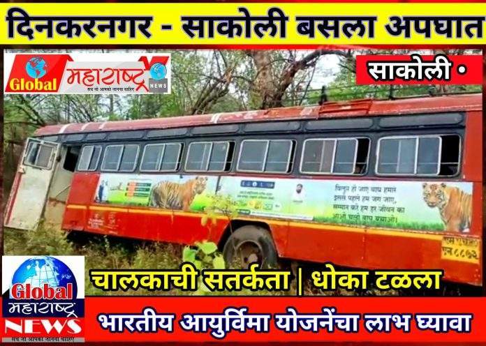 दिनकरनगर साकोली बसला अपघात ; चालकाची समयसुकता ; अनर्थ टळला