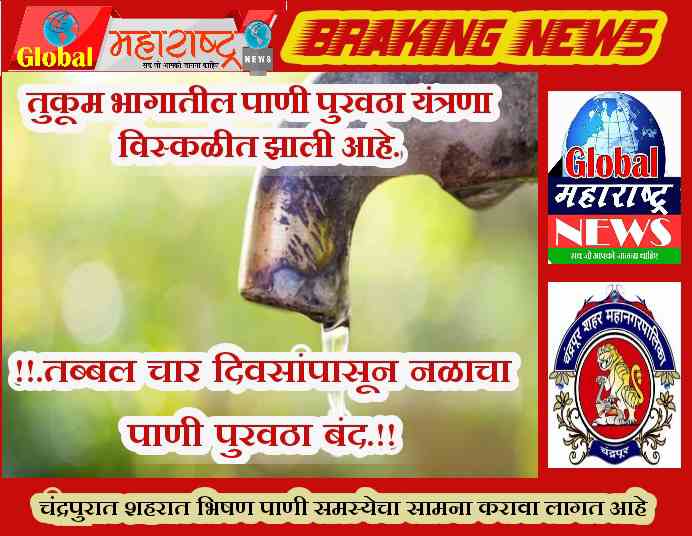 सविस्तर बातमी चंद्रपूर – चंद्रपूर शहरात एकीकडे तापमानाचा पारा चाळीशीच्या पार कडक उन तापत असल्याने नागरिकांच्या जिवाची काहीली होत असताना दुसरीकडे विजेचा लंपडाव एक एक तास वीज पुरवठा खंडीत करुन नागरिकांची अग्नीपरिक्षा घेतली जात असताना महानगरपालिका प्रशासनाने नागरिकांना हि शिक्षा कमी पडते की काय म्हणून गेल्या चार दिवसांपासून पाणी पुरवठा बंद केला आहे. अशा प्रकारे कडक उन, वीज पुरवठा ठप्प अन पाणी पुरवठाही ठप्प अशा परिस्थीतीत चंद्रपूर शहरातील जनतेला एक प्रकारे काळ्या पाण्याची शिक्षेत जगण्यास प्रशासन भाग पाडत आहे.