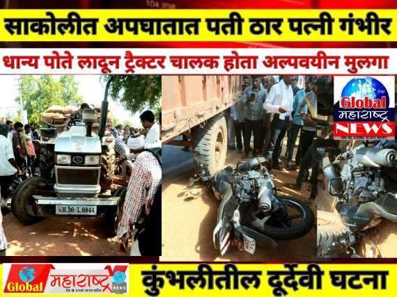 सविस्तर की कुंभलीतून धान्याची पोती लादून साकोलीकडे जाणारा ट्रैक्टर क्रं. एम एच ३६ एल. ६८४४ ने रोडावरून जाणा-या दूचाकीस्वार अनमोल हटवार ३९ रा. ईटखेडा ता. मोर.अर्जूनी ( गोंदिया ) च्या बजाज पल्सर क्रं एम एच ३५ एलपी ४१ ला धडक दिली या भीषण धडकेत अनमोल हटवार यांचा जागीच दूर्देवी मृत्यू झाला असून त्यामागे बसलेली त्याची पत्नी ही रोडवर पडल्याने गंभीर जखमी अवस्थेत तीला साकोली उपजिल्हा रुग्णालयात तातडीने दाखल करण्यात आले. सदर प्रकरणी ट्रैक्टर हा कुणाचा होता, त्या ट्रैक्टरच्या चालकाने अथवा मालकाने एका अल्पवयीन मुलाच्या हाती सहा चाकी ट्रैक्टर व तेही जड वजन लादून कसा काय दिला असे संतप्त प्रतिक्रिया घटनास्थळी उपस्थित होत होत्या. साकोली पोलीस ठाणे निरीक्षक राजेशकूमार थोरात यांचे मार्गदर्शनात घटनेची नोंद करण्यात आली असून मृतकाचे शवविच्छेदन उपजिल्हा रुग्णालयात सुरू होते. पुढील तपास साकोली पोलीस करीत आहेत.