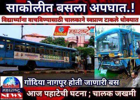 ⛔ साकोलीत ट्रिपलसीट विद्यार्थ्यांना वाचविण्यासाठी चालकाने स्वप्राण टाकले धोक्यात • चालक जखमी • संपूर्ण प्रवासी सुरक्षित