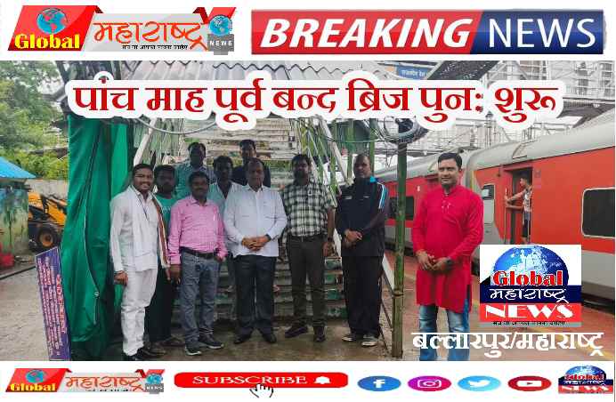 पुरी खबर :- करीब 5 माह से मरम्मत के लिए बंद बल्लारशाह रेलवे स्टेशन का फुट ओवर ब्रिज FOB आज 26 जून सुबह 11 बजे से यात्रियों की सेवा में पुनः प्रारंभ हो हुआ है यात्रियों के आवागमन हेतु पांच प्लेटफ़ार्म के लिए एकमात्र नया ब्रिज ही था.यात्रियों की परेशानीयों को देखते हुए इसे जल्द प्रारंभ करने हेतु अजय दुबे मेंबर राष्ट्रीय रेल उपभोक्ता सलाहकार परिषद रेल मंत्रालय नई दिल्ली लगातार प्रयासरत रहे.