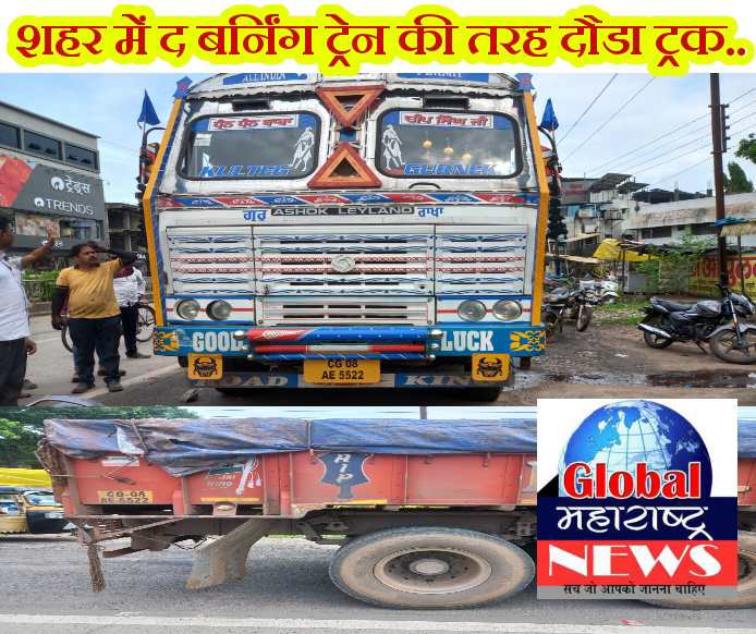 चंद्रपुर शहर में द- बर्निंग ट्रेन की तरह दौडा 32 टन वजनी ट्रक
