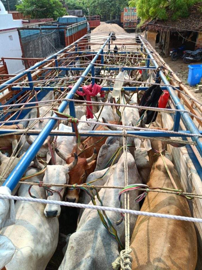 उसी वक्त मवेशीओ को गौशाला में भर्ती कराया गया। कुल 35 जानवर और 15,50,000 रुपये मूल्य का एक बारह पहिया टाटा ट्रक जब्त किया गया है।