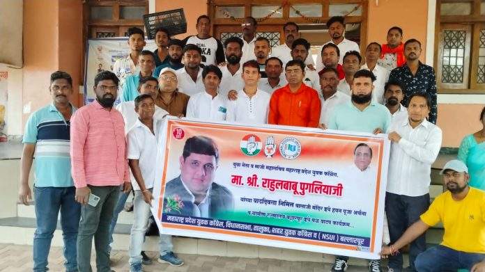 सविस्तर बातमी:-बल्लारपुर विधानसभा युवक कांग्रेस तर्फे महाराष्ट्र प्रदेश युवक कांग्रेस माजी महासचिव राहुल पुगलिया यांच्या वाढदिवसा निमित्य आज रविवारला बल्लारपुर नगरीतील बालाजी मंदिरात त्यांच्या दीर्घायुष्यासाठी हवन पूजन करण्यात आले. तदवतचं स्थानिक ग्रामीण रुग्णालयात रुग्णांना फळ वाटप करण्यात आले.अनेक रुग्णांणी पुगलिया यांना दीर्घायुष्यासाठी आशीर्वाद दिले.सदरहु कार्यक्रमाला