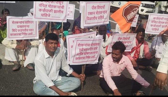 कर्ज माफी, अतिवृष्टी, पूरबुडाई व पीक विम्याचे अनुदान देण्यास टाळाटाळ करणाऱ्या सरकाराच्या विरोधात शेतकऱ्यांचे रास्तारोको
