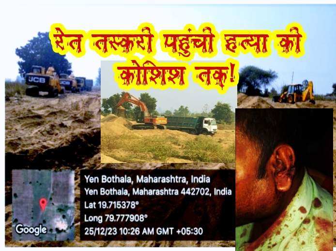 रात में जेसीबी और पोकलेन मशीनों का उपयोग करके ट्रैक्टरों के द्वारा स्टॉक बनाकर गोंडपिपरी तालुका के कुल्था रेत घाट के साथ विट्ठलवाड़ा घाट से रेत की अवैध रेत निकासी की जा रही है। इस बीच, जिला प्रशासन ने रेती घाट पर बचे हुए स्टॉक को उठाने के लिए दिसंबर (31) तक की अनुमति दे दी थी। हालांकि कई घाटों पर स्टॉक की कमी के कारण मिली अनुमति के आधार पर मौके का फायदा उठाकर नदी तल से रेत निकाली जा रहा है. रेत तस्करों द्वारा बड़े पैमाने पर दबंगई के साथ रेत उत्खनन का कार्य चल रहा है. नदी की तलहटी में जेसीबी, हाईवा, पोकलेन के इस्तेमाल को रोकने के लिए सरपंच, तमस अध्यक्ष रेत घाट पर पहुंचे। और वहां कहा-सुनी मारपीट में बदल गई। इसी दौरान रेत तस्करों ने लोहे की रॉड और धारदार हथियार से जानलेवा हमला कर दिया. हमलावरों की पहचान कर ली गई है. वही हमलावर मौके से फरार हो गए. घायल के बयान के अनुसार रेत माफियाओं के खिलाफ धारा 307 के तहत मामला दर्ज करने की प्रक्रिया चल रही है. हमलावर अभी तक पुलिस की पकड़ में नहीं आये हैं. थानेदार जीतन गंगऊ पीएसयाग घोगरे द्वारा गिरफ्तारी और आगे की जांच के लिए एक पुलिस टीम रवाना की गई है।