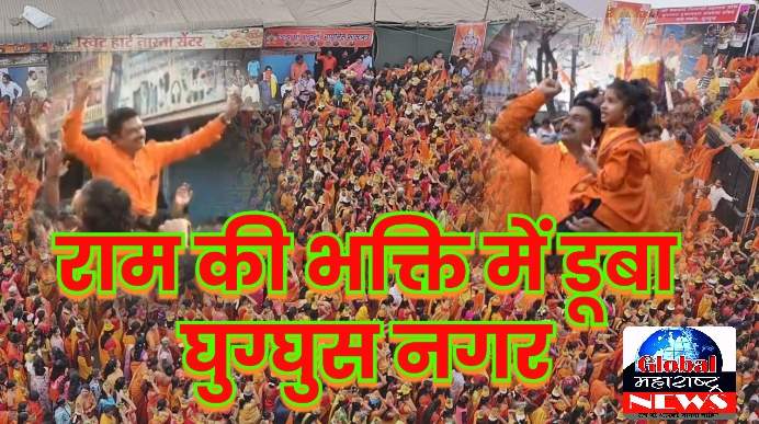 घुग्घुस नगर जय श्री राम के जयकारों से गूंज रहा था और जगह-जगह केसरिया तोरण, स्वागत द्वार, बैनर लगाए गए थे और घुग्घुस नगर भगवामय हो गया था और घुग्घुस नगर का पूरा माहौल भक्तिमय हो गया था.