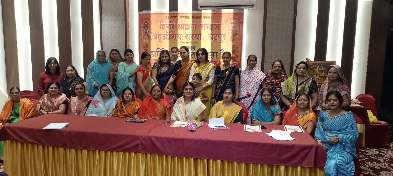 _हिंदी ब्राह्मण समाज महिला प्रकोष्ठ की नवचयनित जिला संयोजिका सौ. पुनम झा जी तथा चंद्रपुर जिला ग्रामीण अध्यक्षा सौ. सुषमा स्वतंत्रकुमार शुक्ला ने अपने मनोगत व्यक्त किया जिसमें सभी महिलाओं को सहकार्य का आश्वासन दिया। महिला प्रकोष्ठ की महानगर अध्यक्षा सौ सुमन रजनीश त्रिपाठी ने संगठन के विश्वास पर खरा उतरने का अपना संकल्प दोहराया।_