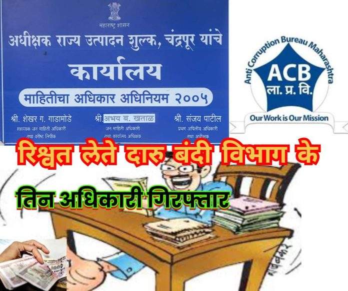 तीनों राज्य उत्पाद शुल्क विभाग चंद्रपुर, के खिलाफ भ्रष्टाचार निरोधक विभाग, चंद्रपुर द्वारा कार्रवाई..