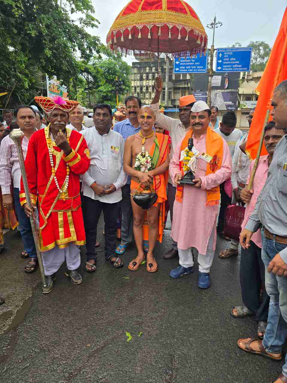 आज दिनांक 16 जुलै 2024 रोजी मंगळवारला सकाळी माता महाकाली मंदिरापासून निघालेल्या वारीत श्री. संत स्वामी चैतन्य महाराज यांच्या सह शेकडो वारकरी पालखी घेऊन टाळ, मृदंगाच्या आवाजात भजन, भारुड, संकीर्तन गात डोक्यावर तुळशवृंदावन घेऊन भगिनी व इतर सर्व वारकरी आनंदमय वातावरणात पांडुरंगाच्या नामस्मरणात तल्लीन होऊन फुगडी व रिंगणाच्या सुंदर प्रदर्शन करीत पायी निघाले. वारीचे गिरनार चौकात जिल्ह्याचे पालकमंत्री ना. सुधीरभाऊ मुनगंटीवार यांच्या मार्गदर्शनात श्री. संत स्वामी चैतन्य महाराज व पालखीचे पुष्पवर्षाव करून जल्लोषात स्वागत करण्यात आले.