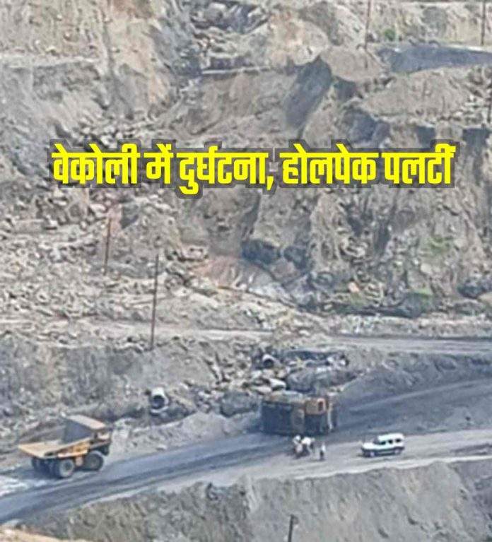 वेकोली के अधिकारी तुरंत घटनास्थल पर पहुंच गए हैं और पलटे हुए होलपेक को निकालने के प्रयास जारी हैं।