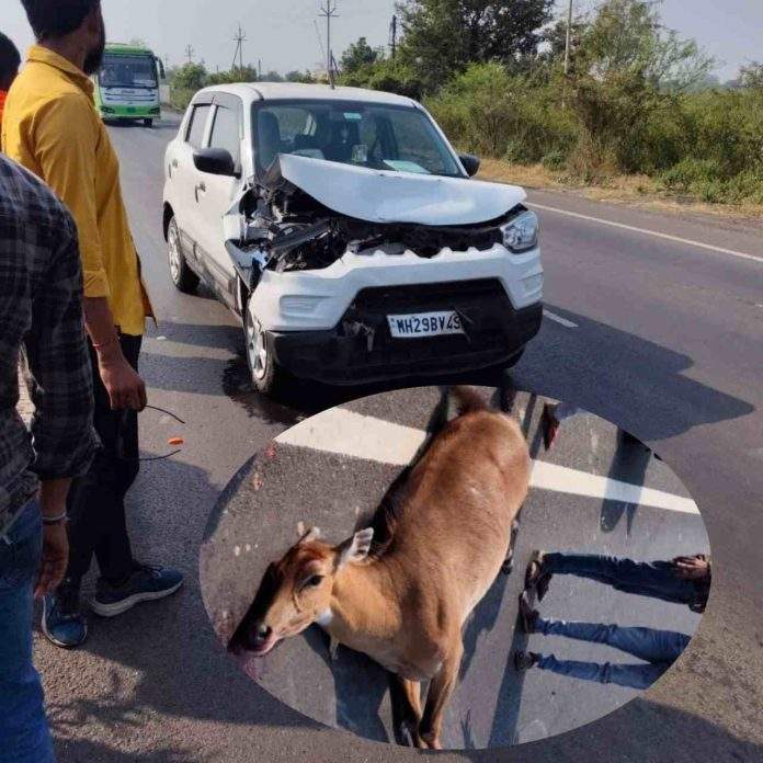 हिरण की टक्कर से हादसा: चंद्रपुर जिले में कार के उड़े परखच्चे..